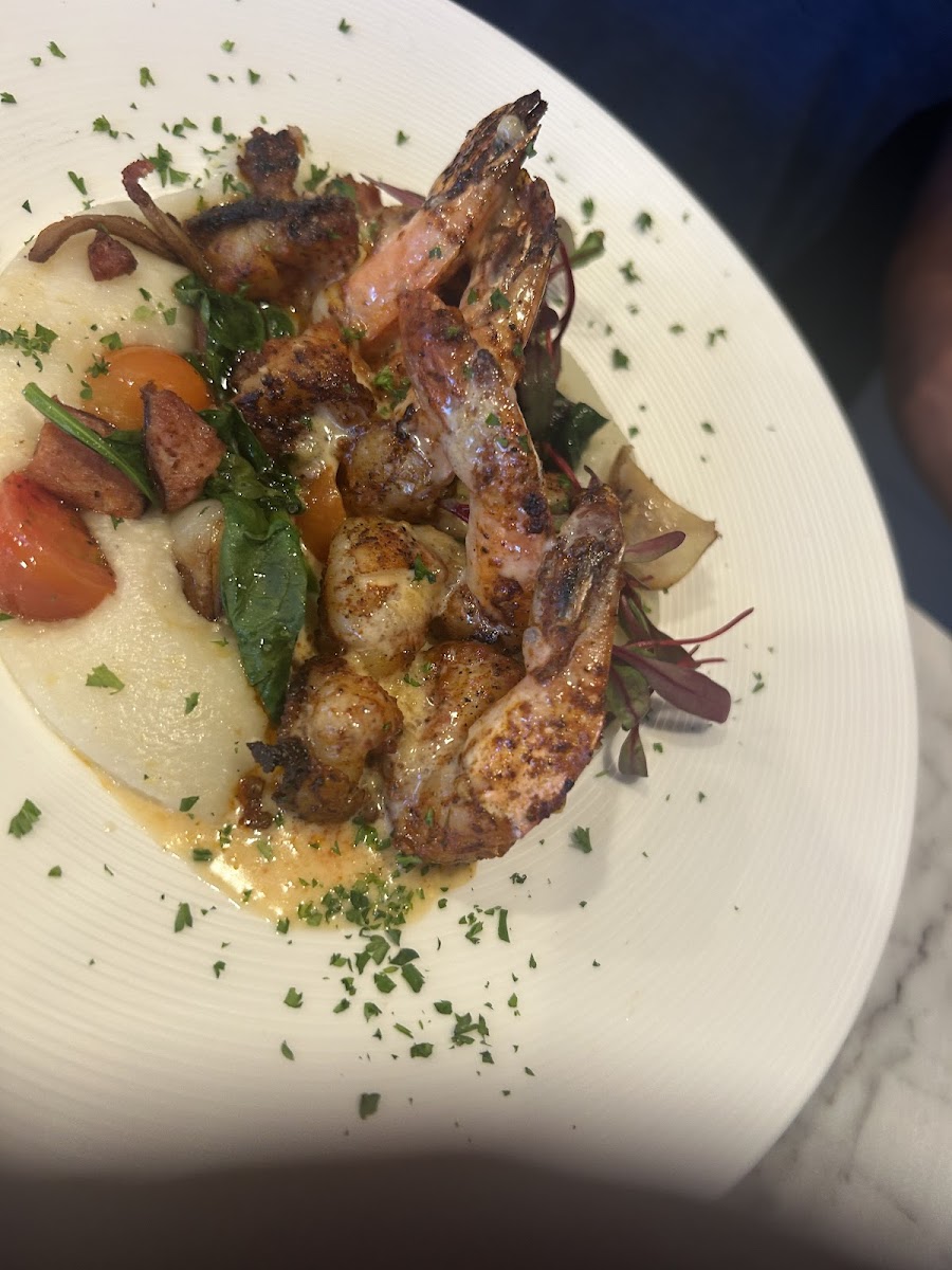 “ The ambiance was soothing the the senses! The decor and especially the artwork are 10/10! The customer service was warm and attentive, the food and drinks (presentation and taste) were phenomenal! This is the first of many visits and I will definitely bring my out of town guests to this fine establishment. I had the blackened salmon and grits…chef’s kiss! My friends raved about their food. Cheers to the entire staff! ”