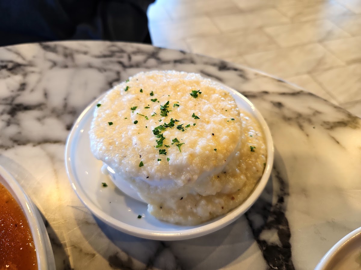 “ I don't have enough stars to rate the food. It was excellent and the portions are huge. We went for lunch and I have a whole meal left over for dinner. The smoke Mac and cheese were sooo good. If someone at your table gets fries, please dip a fry in the cheese sauce. You will thank me later. The Brussels sprouts were perfectly sauced and charred. I can't wait to eat them again later. I ordered the fish and grits. Instead of salmon, I had the fried Swai. The grits are loaded with flavor, onion, tomatoes and greens. The fish was fried just right and seasoned. It perfectly paired together with the grits. My friend had the fried chicken sandwich and it was huge. The chicken had a great crunch but was still very juicy inside. I see what the hype is about and I cannot wait to come back. I am going to dream about that food. ”